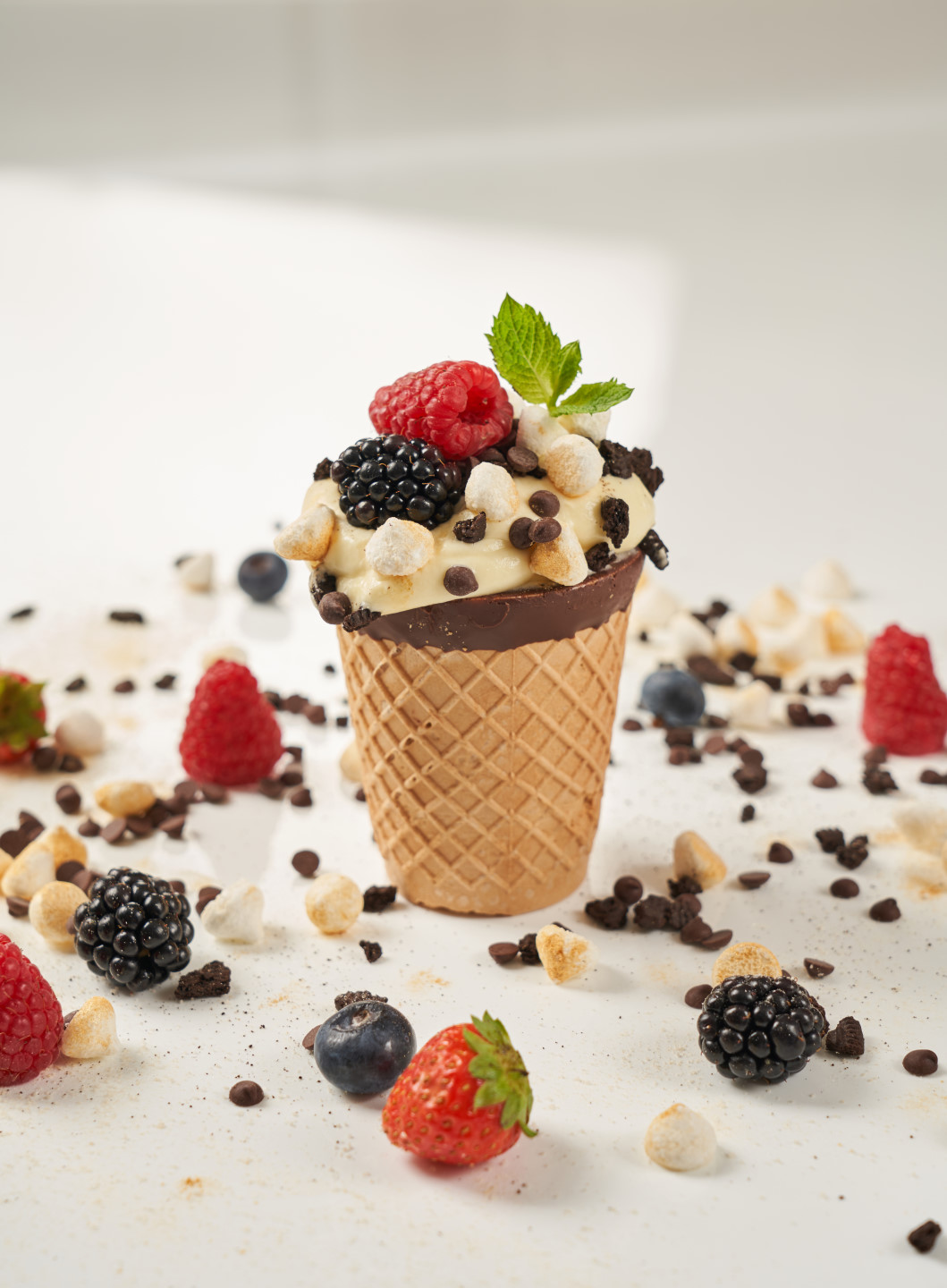 Crema al mascarpone con frutti di bosco meringhe e cioccolato.